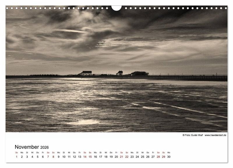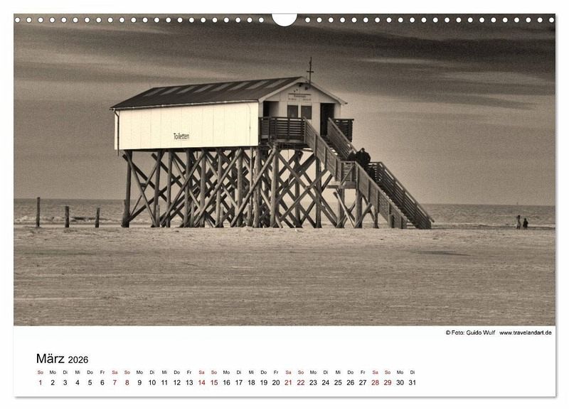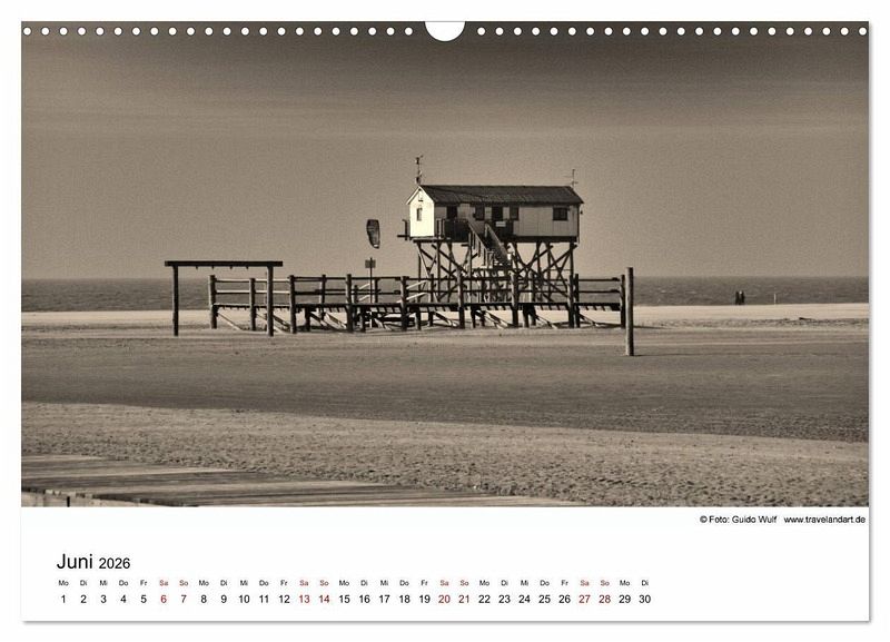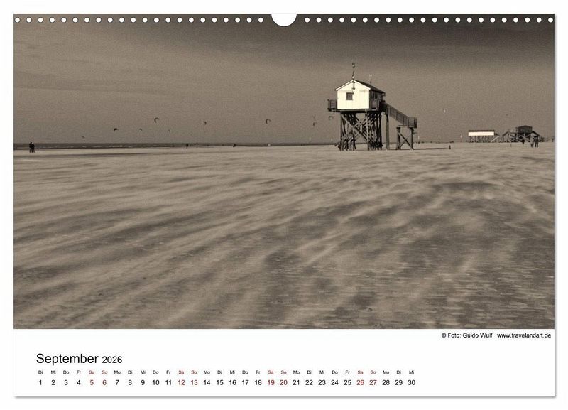 Sankt Peter-Ording aufgenommen in hochwertigen Sephia Aufnahmen begleitet Sie durch das Jahr.