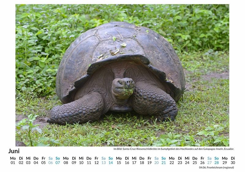 Entdecken Sie die faszinierende Welt der Santa Cruz Riesenschildkröte mit unserem exklusiven Wandkalender! Tauchen Sie Monat für Monat in die beeindruckende Schönheit dieser majestätischen Tiere ein - festgehalten in 12 atemberaubenden Motiven, die auf hochwertigem, lichtbeständigem Bilderdruckpapier erstrahlen. Gedruckt in Deutschland auf FSC-zertifiziertem Papier, vereint dieser Kalender Nachhaltigkeit und Ästhetik in Perfektion. Ob als Geschenk oder für Ihr eigenes Zuhause - dieser Kalender ist ein echter Hingucker und bringt die Ruhe und Gelassenheit der Natur direkt an Ihre Wand. Sichern Sie sich jetzt Ihr Exemplar und lassen Sie sich inspirieren! Hochwertig Erleben Sie ein Jahr voller Eleganz mit unserem Premium-Fotokalender. Jedes der 12 Motive ist auf hochwertigem, lichtbeständigem Bilderdruckpapier gedruckt, um die Lebendigkeit jedes Bildes zu bewahren. Die robuste Spiralbindung gewährleistet Langlebigkeit und einfache Handhabung. Nachhaltig Unser Engagement für die Umwelt spiegelt sich in jedem Exemplar wider. Durch die Produktion auf Abruf reduzieren wir signifikant unseren Abfall. Wir verwenden ausschließlich umweltfreundliches, FSC-zertifiziertes Papier. Stolz gefertigt in Deutschland, achten wir bei unserer Logistik auf Klimaschutz, um unseren ökologischen Fußabdruck zu minimieren. Das ideale Geschenk Dieser Kalender ist das perfekte Präsent für jeden Anlass - ob Weihnachten, Geburtstage oder einfach als liebevolle Aufmerksamkeit zwischendurch. Geeignet für Freunde, Familie, Kinder und Erwachsene gleichermaßen, bereichert er jedes Zuhause mit seiner Vielfalt und Schönheit, unabhängig vom Alter der Beschenkten.