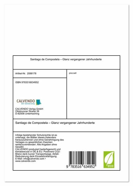 QUALITÄT - Hochwertiger Fotokalender mit 12 wunderschönen Motiven auf lichtbeständigem Bilderdruckpapier, robuste Spiralbindung.NACHHALTIG - deutliche Abfallreduzierung durch bedarfsgerechte Einzelstückfertigung, umweltfreundliches FSC-zertifiziertes Papier, Produktion in Deutschland, klimabewusste Logistik.PERFEKTES GESCHENK - Kalender für Freunde und Familie, für Kinder und Erwachsene, jung und alt, zu Weihnachten, Geburtstag oder zwischendurch.VIELFALT - Bildkalender in verschiedenen Formaten, z.B. DIN A5, DIN A4, DIN A3 sowie DIN A2. Ob Naturmotiv, Gemälde oder Fotos, ideal für ein persönliches Wohlfühlambiente.Ein Kalender mit den schönsten Bauwerken von Santiago de Compostela. von Autor(in): Fabian Junge
