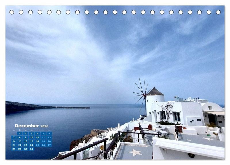 Perfekt für alle, die von Santorin träumen - sichern Sie sich jetzt den einzigartigen Kalender und genießen Sie die Ägäis jeden Tag!