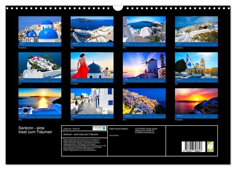 QUALITÄT - Hochwertiger Fotokalender mit 12 wunderschönen Motiven auf lichtbeständigem Bilderdruckpapier, robuste Spiralbindung mit Aufhängebügel.NACHHALTIG - deutliche Abfallreduzierung durch bedarfsgerechte Einzelstückfertigung, umweltfreundliches FSC-zertifiziertes Papier, Produktion in Deutschland, klimabewusste Logistik.PERFEKTES GESCHENK - Kalender für Freunde und Familie, für Kinder und Erwachsene, jung und alt, zu Weihnachten, Geburtstag oder zwischendurch.VIELFALT - Bildkalender in verschiedenen Formaten, z.B. DIN A5, DIN A4, DIN A3 sowie DIN A2. Ob Naturmotiv, Gemälde oder Fotos, ideal für ein persönliches Wohlfühlambiente.Santorin - die schönste griechische Insel lädt Sie ein von Autor(in): Klaus Ruttloff