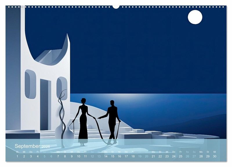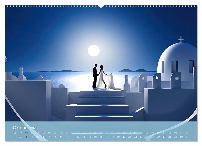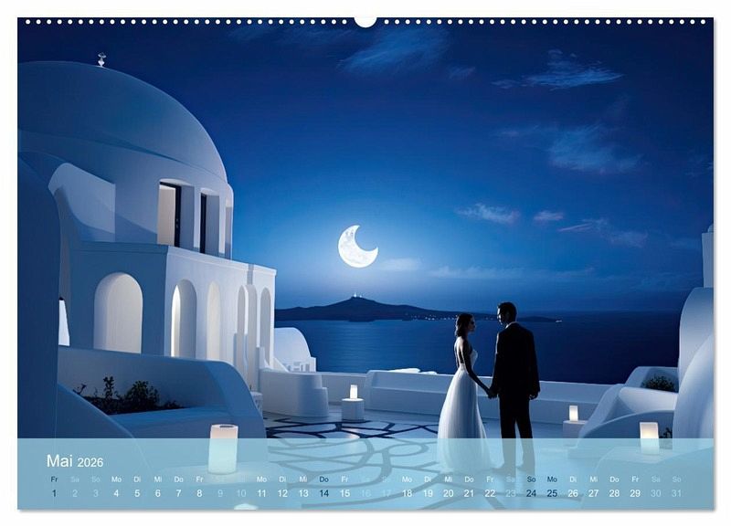 Erleben Sie das ganze Jahr über die romantische Pracht von Santorini mit unserem traumhaften Wandkalender. Verlieben Sie sich jeden Monat aufs Neue in die atemberaubende Schönheit der Insel, während der sanfte Mond über dem azurblauen Meer scheint. Perfekt für Griechenlandliebhaber und als Geschenk für besondere Anlässe wie Hochzeiten oder Hochzeitsreisen. Tauchen Sie ein in die magische Welt von Santorini!