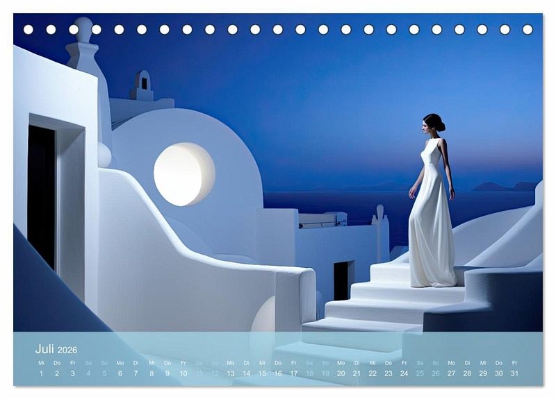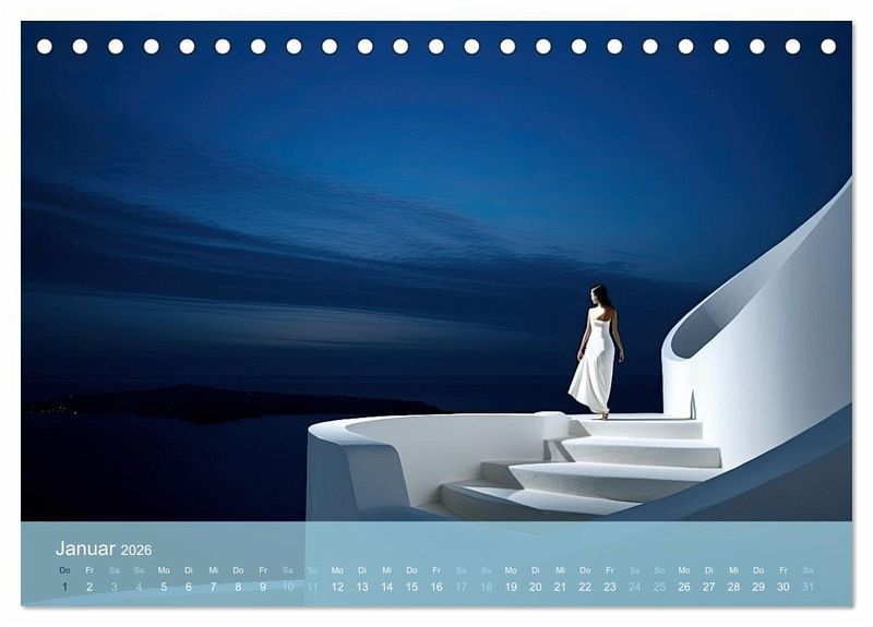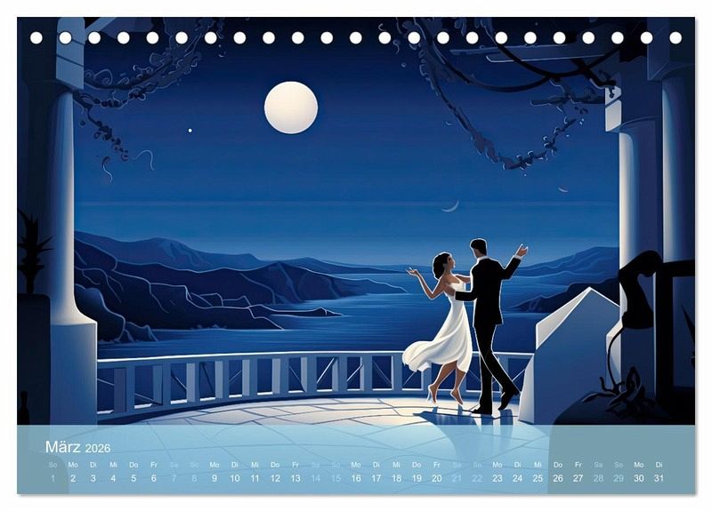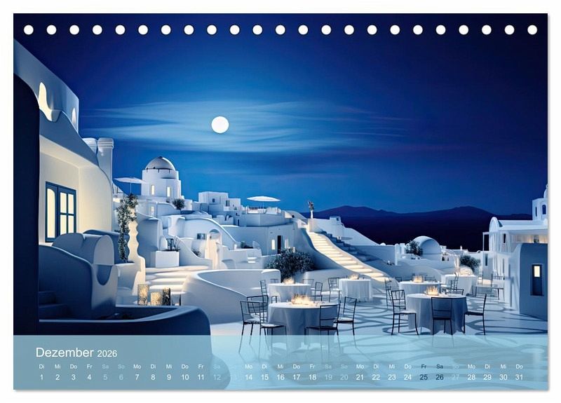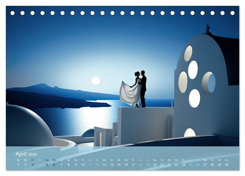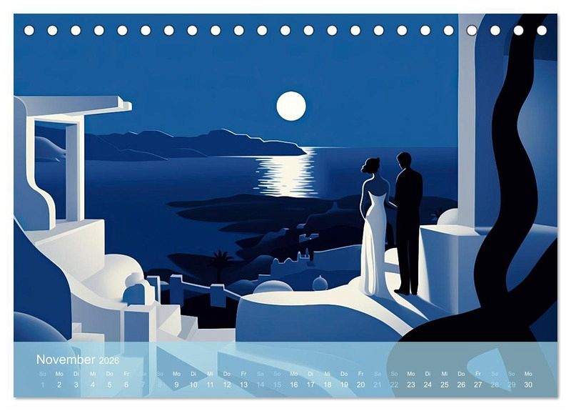 Erleben Sie das ganze Jahr über die romantische Pracht von Santorini mit unserem traumhaften Wandkalender. Verlieben Sie sich jeden Monat aufs Neue in die atemberaubende Schönheit der Insel, während der sanfte Mond über dem azurblauen Meer scheint. Perfekt für Griechenlandliebhaber und als Geschenk für besondere Anlässe wie Hochzeiten oder Hochzeitsreisen. Tauchen Sie ein in die magische Welt von Santorini!