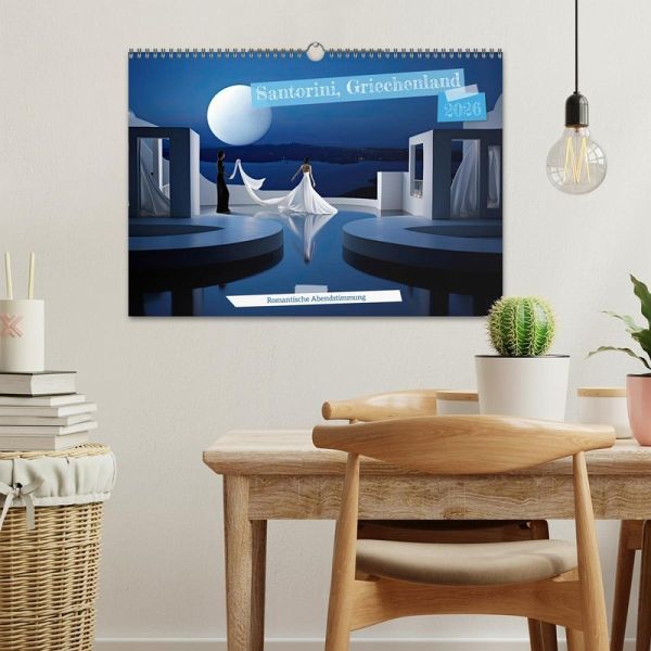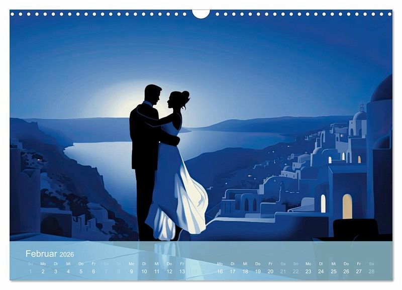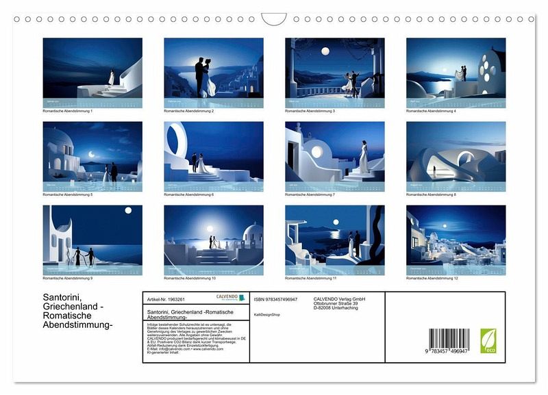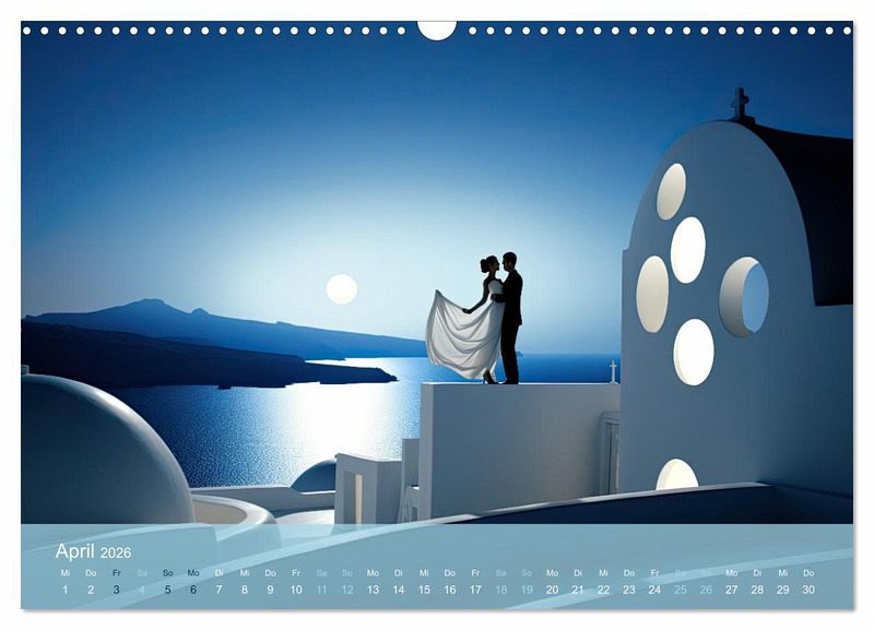 Erleben Sie das ganze Jahr über die romantische Pracht von Santorini mit unserem traumhaften Wandkalender. Verlieben Sie sich jeden Monat aufs Neue in die atemberaubende Schönheit der Insel, während der sanfte Mond über dem azurblauen Meer scheint. Perfekt für Griechenlandliebhaber und als Geschenk für besondere Anlässe wie Hochzeiten oder Hochzeitsreisen. Tauchen Sie ein in die magische Welt von Santorini!