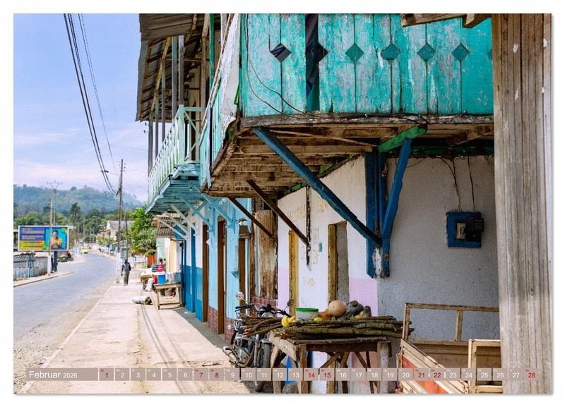 Februar: Holzhäuser mit Balkonen in dem Ort Guadelupe