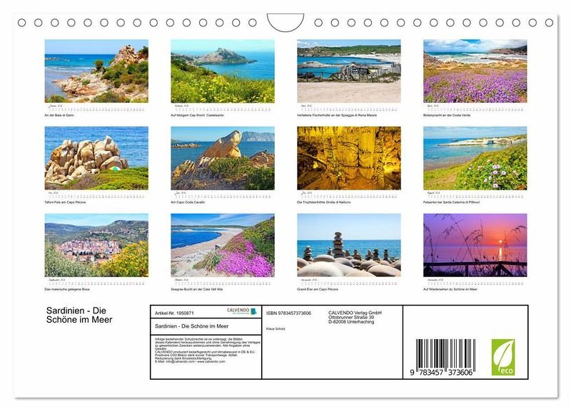 QUALITÄT - Hochwertiger Fotokalender mit 12 wunderschönen Motiven auf lichtbeständigem Bilderdruckpapier, robuste Spiralbindung mit Aufhängebügel.NACHHALTIG - deutliche Abfallreduzierung durch bedarfsgerechte Einzelstückfertigung, umweltfreundliches FSC-zertifiziertes Papier, Produktion in Deutschland, klimabewusste Logistik.PERFEKTES GESCHENK - Kalender für Freunde und Familie, für Kinder und Erwachsene, jung und alt, zu Weihnachten, Geburtstag oder zwischendurch.VIELFALT - Bildkalender in verschiedenen Formaten, z.B. DIN A5, DIN A4, DIN A3 sowieDIN A2. Ob Naturmotiv, Gemälde oder Fotos, ideal für ein persönliches Wohlfühlambiente.Sardinien - Die Schöne im Meer von Autor(in): Klaus Scholz
