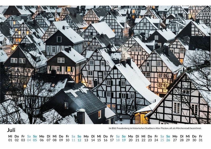 Entdecken Sie das malerische Sauerland in 12 atemberaubenden Motiven! Unser hochwertiger Wandkalender bringt die Schönheit dieser einzigartigen Region direkt in Ihr Zuhause. Von idyllischen Wäldern über sanfte Hügel bis hin zu charmanten Fachwerkdörfern - jeder Monat überrascht mit einem neuen, liebevoll ausgewählten Bild. Gedruckt auf lichtbeständigem Bilderdruckpapier, bleibt die Farbbrillanz das ganze Jahr über erhalten. Nachhaltigkeit liegt uns am Herzen: Der Kalender wird in Deutschland auf FSC-zertifiziertem Papier produziert. Holen Sie sich ein Stück Natur an Ihre Wand und lassen Sie sich Monat für Monat inspirieren! Perfekt auch als Geschenk! Hochwertig Erleben Sie ein Jahr voller Eleganz mit unserem Premium-Fotokalender. Jedes der 12 Motive ist auf hochwertigem, lichtbeständigem Bilderdruckpapier gedruckt, um die Lebendigkeit jedes Bildes zu bewahren. Die robuste Spiralbindung gewährleistet Langlebigkeit und einfache Handhabung. Nachhaltig Unser Engagement für die Umwelt spiegelt sich in jedem Exemplar wider. Durch die Produktion auf Abruf reduzieren wir signifikant unseren Abfall. Wir verwenden ausschließlich umweltfreundliches, FSC-zertifiziertes Papier. Stolz gefertigt in Deutschland, achten wir bei unserer Logistik auf Klimaschutz, um unseren ökologischen Fußabdruck zu minimieren. Das ideale Geschenk Dieser Kalender ist das perfekte Präsent für jeden Anlass - ob Weihnachten, Geburtstage oder einfach als liebevolle Aufmerksamkeit zwischendurch. Geeignet für Freunde, Familie, Kinder und Erwachsene gleichermaßen, bereichert er jedes Zuhause mit seiner Vielfalt und Schönheit, unabhängig vom Alter der Beschenkten.