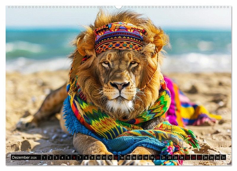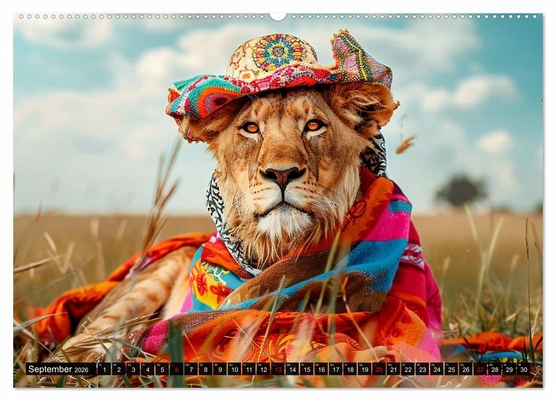 Tauchen Sie ein in eine Welt der wilden Eleganz und des tierischen Stils! Begleiten Sie Löwen, Leoparden und Geparden auf ihren modischen Abenteuern in der afrikanischen Wildnis, wo sie mit ihren atemberaubenden Outfits und selbstbewussten Posen die Kamera erobern. Jeder Monat wurde mit Hilfe von KI erstellt und bringt einen neuen Hauch von Glamour und Abenteuer in Ihr Zuhause, während diese majestätischen Großkatzen die Laufstege der Natur erobern.