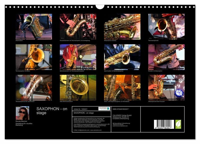 Das Saxophon verleiht jeder Musikrichtung seinen unverwechselbaren, markanten Sound. 1840 von dem Belgier Adolphe Sax erfunden, fand das Saxophon zuerst vor allem in der Jazz- und Clubszene Verwendung. Heute ist dieses Holzblasinstrument in allen Facetten der Musik vertreten. Der außergewöhnliche Kalender fasziniert mit kultigen Konzertaufnahmen und Closeups dieses beliebten Musikinstruments. Das passende Geschenk für alle Musikliebhaber.