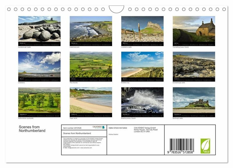 QUALITY - High-quality photo calendar with 12 beautiful images on light-resistant paper, robust spiral binding with hanger.SUSTAINABLE - Significant waste reduction due to print-on-demand production, environmentally friendly FSC-certified paper, produced in the UK, climate-conscious logistical processes.PERFECT GIFT - calendars for friends and family, for children, all ages and all occasions, from Christmas to birthdays and everything in between.LOTS OF CHOICE - Wall calendars in different sizes (DIN A4 and DIN A3), for any topic and personal taste, featuring photography, painting and illustrations.Beautiful landscape photographs from locations in the North East of England, author: Andrew Kearton