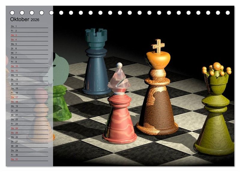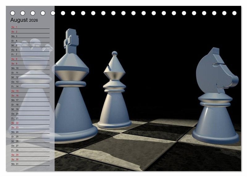 Das Wort Schach wurde vom persischen Wort "Schah" abgeleitet, was König bedeutet. Daher wird Schach gerne als Spiel der Könige bezeichnet, oder auch das königliche Spiel. Auf jedem Kalenderblatt faszinieren uns fantastische Bilder dieses strategischen Brettspiels. Die schönsten Aufnahmen verschiedener Fotokünstler wurden eigens für diesen außergewöhnlichen Bildkalender mit Planerfunktion zusammengestellt. Das passende Geschenk für alle die sich für Schach begeistern und schöne Bilder lieben.