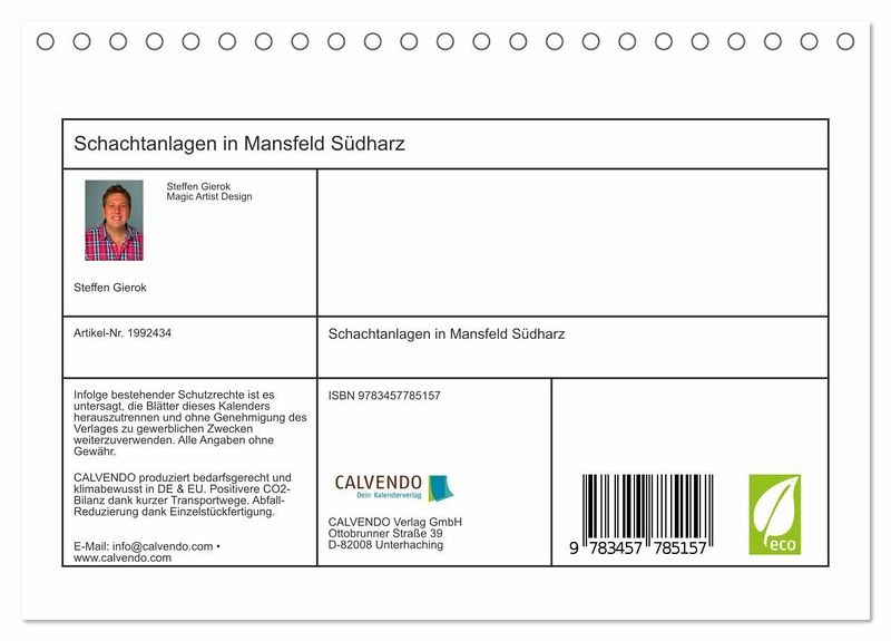 QUALITÄT - Hochwertiger Fotokalender mit 12 wunderschönen Motiven auf lichtbeständigem Bilderdruckpapier, robuste Spiralbindung.NACHHALTIG - deutliche Abfallreduzierung durch bedarfsgerechte Einzelstückfertigung, umweltfreundliches FSC-zertifiziertes Papier, Produktion in Deutschland, klimabewusste Logistik.PERFEKTES GESCHENK - Kalender für Freunde und Familie, für Kinder und Erwachsene, jung und alt, zu Weihnachten, Geburtstag oder zwischendurch.VIELFALT - Bildkalender in verschiedenen Formaten, z.B. DIN A5, DIN A4, DIN A3 sowie DIN A2. Ob Naturmotiv, Gemälde oder Fotos, ideal für ein persönliches Wohlfühlambiente.Schachthalden und Wahrzeichen aus der Region Mansfeld Südharz von Autor(in): Steffen Gierok ; Magik Artist Design