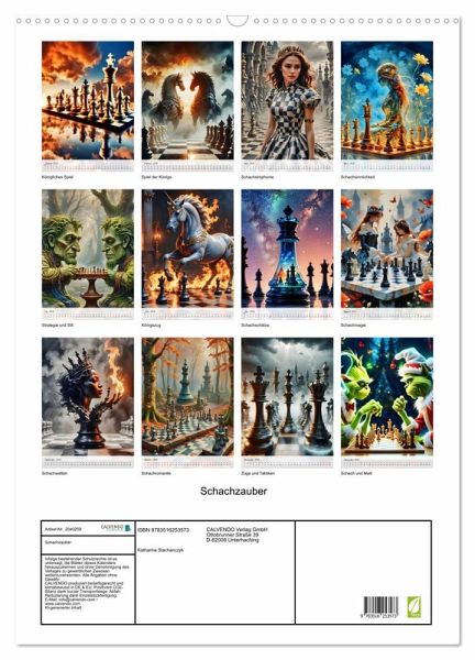 QUALITÄT - Hochwertiger Fotokalender mit 12 wunderschönen Motiven auf lichtbeständigem Bilderdruckpapier, robuste Spiralbindung mit Aufhängebügel.NACHHALTIG - deutliche Abfallreduzierung durch bedarfsgerechte Einzelstückfertigung, umweltfreundliches FSC-zertifiziertes Papier, Produktion in Deutschland, klimabewusste Logistik.PERFEKTES GESCHENK - Kalender für Freunde und Familie, für Kinder und Erwachsene, jungund alt, zu Weihnachten, Geburtstag oder zwischendurch.VIELFALT - Bildkalender in verschiedenen Formaten, z.B. DIN A5, DIN A4, DIN A3 sowie DIN A2. Ob Naturmotiv, Gemälde oder Fotos, ideal für ein persönliches Wohlfühlambiente."Schachzauber" entführt Sie jeden Monat in die faszinierende Welt des Schachspiels, wo Strategie und Ästhetik auf dem Brett eine perfekte Harmonie bilden. von Autor(in): Katharina Stachanczyk