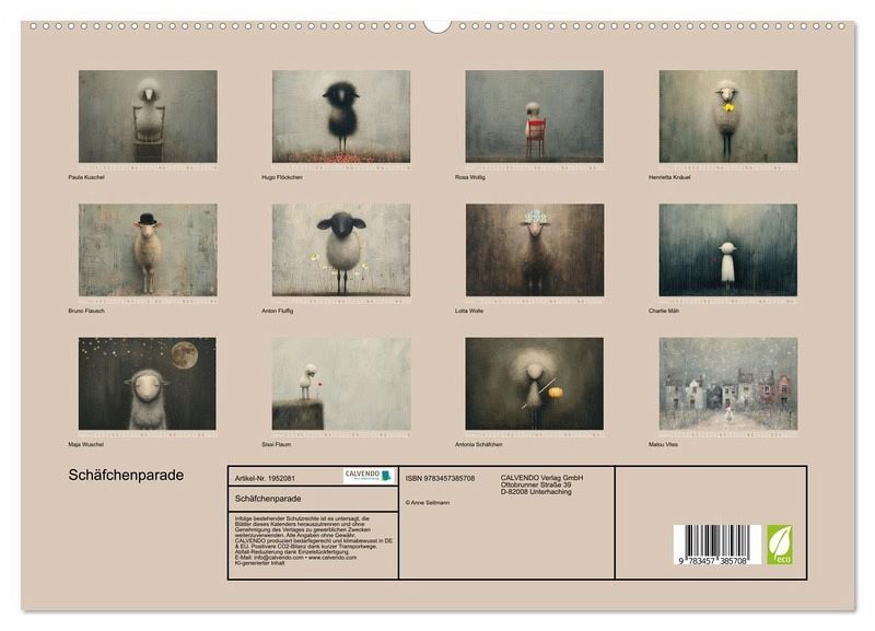 PREMIUM-LINIE - Brillanter Fotokalender mit 12 wunderschönen Motiven, Kunstdruck in Hochglanz in Museumsqualität.QUALITÄT - edle Materialien, stabile Rückwand mit 2 innovativen Einstecktaschen für eine optimale Präsentation an der Wand.NACHHALTIG - deutliche Abfallreduzierung durch bedarfsgerechte Einzelstückfertigung, umweltfreundliches FSC-zertifiziertes Papier, Produktion in Deutschland, klimabewusste Logistik.PERFEKTES GESCHENK - Kalender für Freunde und Familie, für Kinder und Erwachsene, jung und alt, zu Weihnachten, Geburtstag oder zwischendurch.Wollige Schäfchen, KI generierte Bilder von Autor(in): Anne Seltmann