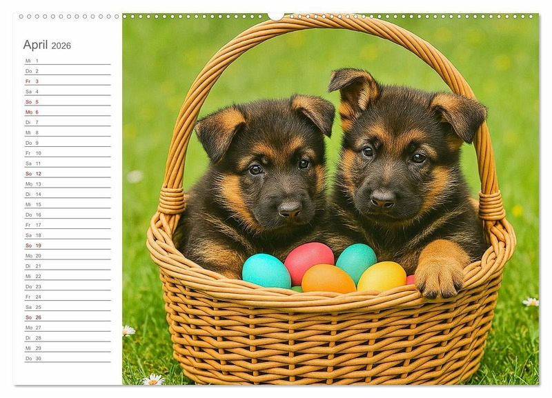 Dieser liebevoll gestaltete Kalender begleitet dich mit zwölf einzigartigen Motiven durch das Jahr - voller Charme, Neugier und flauschiger Lebensfreude. Ob im Osterkörbchen, im bunten Herbstlaub oder unterm Weihnachtsbaum: Schäferhundwelpen sorgen in jeder Saison für ein Lächeln.