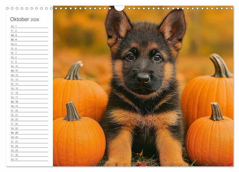 Dieser liebevoll gestaltete Kalender begleitet dich mit zwölf einzigartigen Motiven durch das Jahr - voller Charme, Neugier und flauschiger Lebensfreude. Ob im Osterkörbchen, im bunten Herbstlaub oder unterm Weihnachtsbaum: Schäferhundwelpen sorgen in jeder Saison für ein Lächeln.