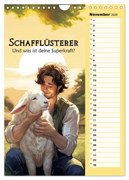 Bezaubernde KI-Bilder wurden in diesem Kalender mit lustigen Sprüchen kombiniert, die Ihnen garantiert ein Lächeln auf die Lippen zaubern. Und als ob das noch nicht genug wäre, bietet er auch noch genügend Platz für Ihre persönlichen Termine und Notizen. Tragen Sie Ihre Termine ein und füllen Sie die leeren Felder mit Ihren Gedanken und Ideen.