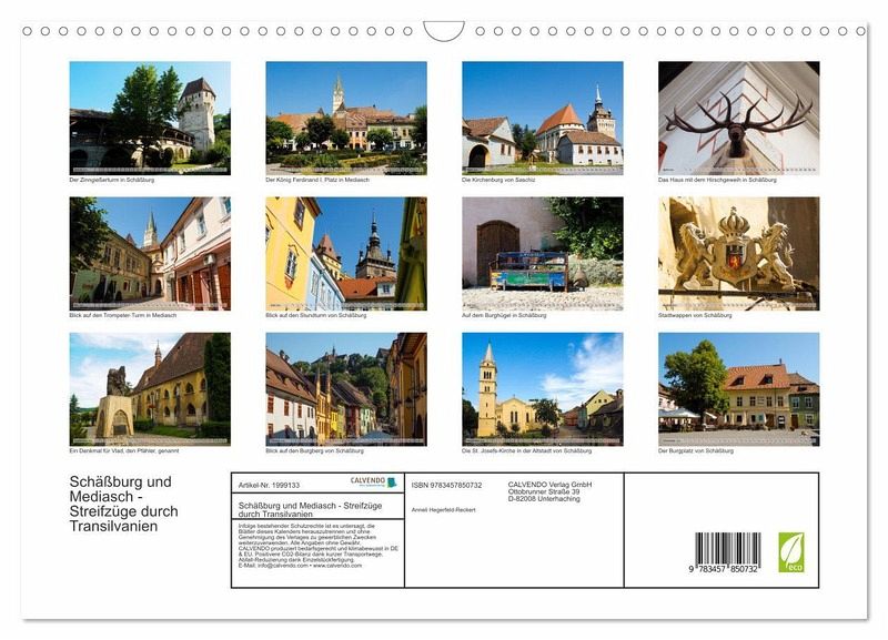 QUALITÄT - Hochwertiger Fotokalender mit 12 wunderschönen Motiven auf lichtbeständigem Bilderdruckpapier, robuste Spiralbindung mit Aufhängebügel.NACHHALTIG - deutliche Abfallreduzierung durch bedarfsgerechte Einzelstückfertigung, umweltfreundliches FSC-zertifiziertes Papier, Produktion in Deutschland, klimabewusste Logistik.PERFEKTES GESCHENK- Kalender für Freunde und Familie, für Kinder und Erwachsene, jung und alt, zu Weihnachten, Geburtstag oder zwischendurch.VIELFALT - Bildkalender in verschiedenen Formaten, z.B. DIN A5, DIN A4, DIN A3 sowie DIN A2. Ob Naturmotiv, Gemälde oder Fotos, ideal für ein persönliches Wohlfühlambiente.Ein fotografischer Streifzug durch einen Teil von Siebenbürgen, mit dem Schwerpunkt in und um Schäßburg, Mediasch und Saschiz von Autor(in): Anneli Hegerfeld-Reckert
