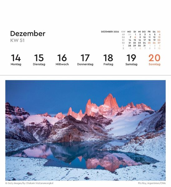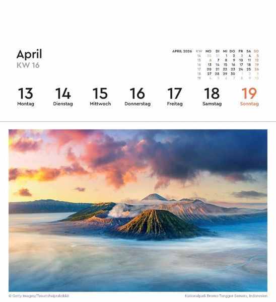 53 fantastische Fotografien in hochwertigem Druck können als Postkarten gesammelt oder verschickt werden. Natürlich enthält der Kalender einen praktischen wöchentlichen Terminplaner.