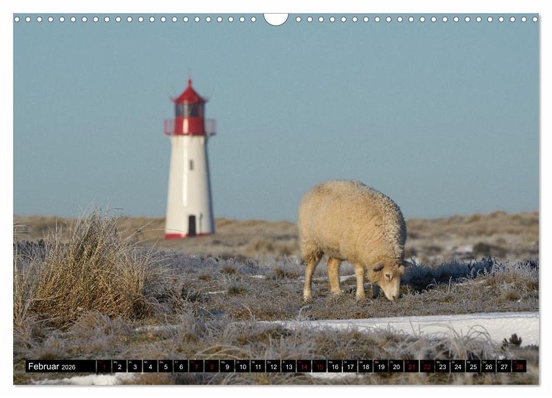 Februar: Schaf mit Leuchtturm im Winter