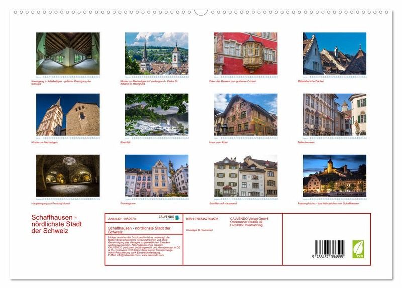 PREMIUM-LINIE - Brillanter Fotokalender mit 12 wunderschönen Motiven, Kunstdruck in Hochglanz in Museumsqualität.QUALITÄT - edle Materialien, stabile Rückwand mit 2 innovativen Einstecktaschen für eine optimale Präsentation an der Wand.NACHHALTIG - deutliche Abfallreduzierung durch bedarfsgerechte Einzelstückfertigung, umweltfreundliches FSC-zertifiziertes Papier, Produktion in Deutschland, klimabewusste Logistik.PERFEKTES GESCHENK - Kalender für Freunde und Familie, für Kinder und Erwachsene, jung und alt, zu Weihnachten, Geburtstag oder zwischendurch.Schaffhausen - Die Stadt der 171 Erker von Autor(in): Giuseppe Di Domenico