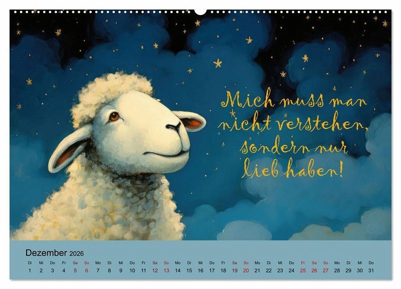 Verleihen Sie Ihrem Jahr eine Extraportion Spaß und Herzenswärme mit dem Schafsprüche-Kalender! Egal, ob Sie selbst ein Schafliebhaber sind oder ein tolles Geschenk suchen, die flauschigen Freunde bringen jeden zum Lächeln. Die Autorin hat KI-Magie und Schafweisheiten kombiniert, um Sie 365 Tage lang zu erfreuen. Dieser qualitativ hochwertige Kalender gehört zur exklusiven CALVENDO Gold-Edition.