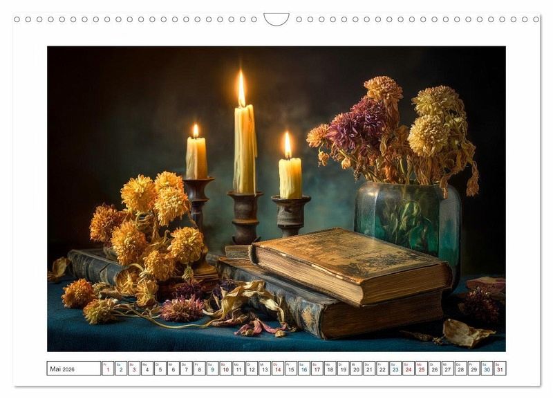 In jeder Stunde liegt ein Geheimnis. In jedem Objekt ein Stück Vergangenheit. Dieser Kalender lädt ein zu einer Reise in die Stille, wo Kerzen flackern, Uhren schweigen und alte Dinge ihre Geschichten offenbaren. Ein Jahr voller Sinnbilder, voller Emotion, voller Staunen. Ein Kalender, der nicht nur Räume schmückt, sondern Herzen berührt. Alle hier gezeigten Bilder wurden mit Sorgfalt, Liebe und mit Hilfe einer KI generiert. Abschließend werden sie mit Bildbearbeitungsprogrammen überarbeitet und in den Kalender eingefügt.