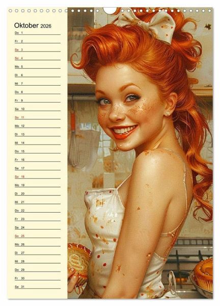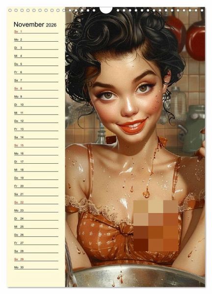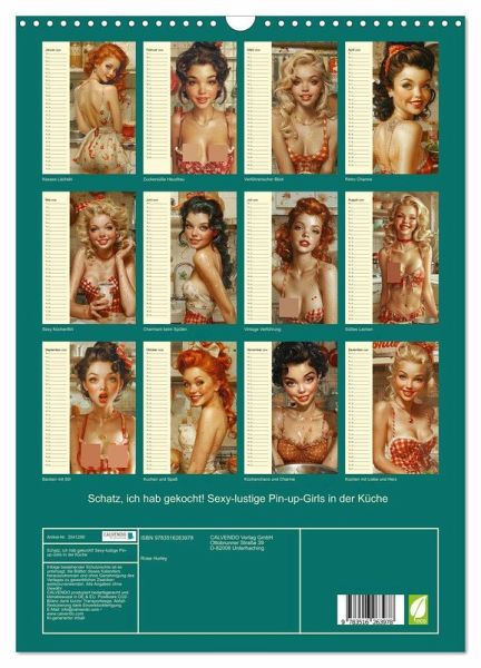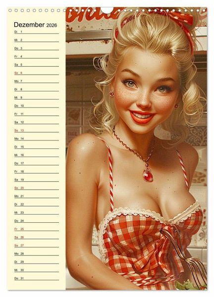 Dieser Kalender bringt den Charme und die Sinnlichkeit der 50er Jahre in Ihre Küche. Jedes Bild wurde mit Hilfe von KI erstellt und zeigt eine wunderschöne Frau in einer humorvoll-sexy Pose, die das Herz höher schlagen lässt. Lassen Sie sich jeden Monat von einem neuen, bezaubernden Pin-Up-Girl verzaubern. Erleben Sie den nostalgischen Glamour und die zeitlose Schönheit dieser Kunst.