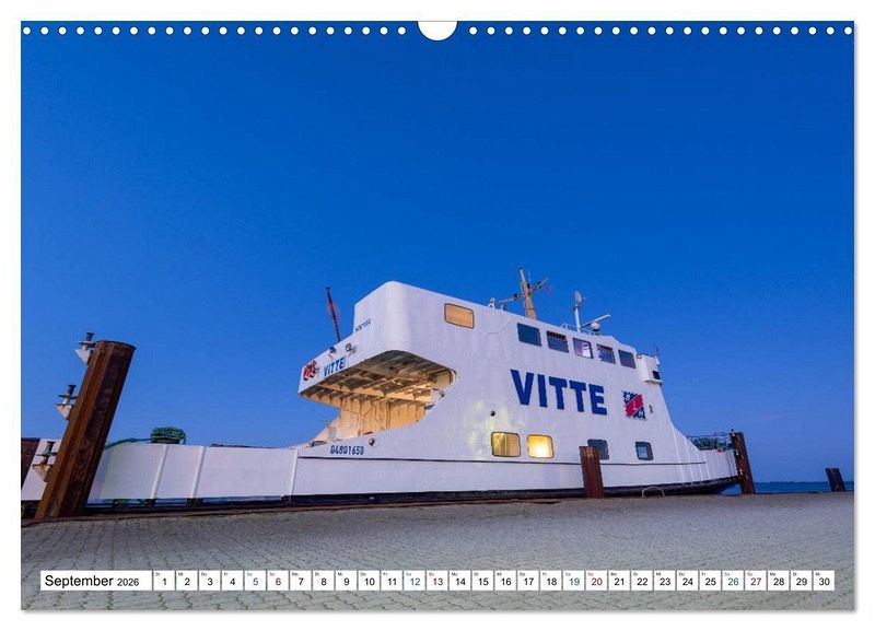September: Die Fähre Vitte hat zur blauen Stunde am Kai festgemacht