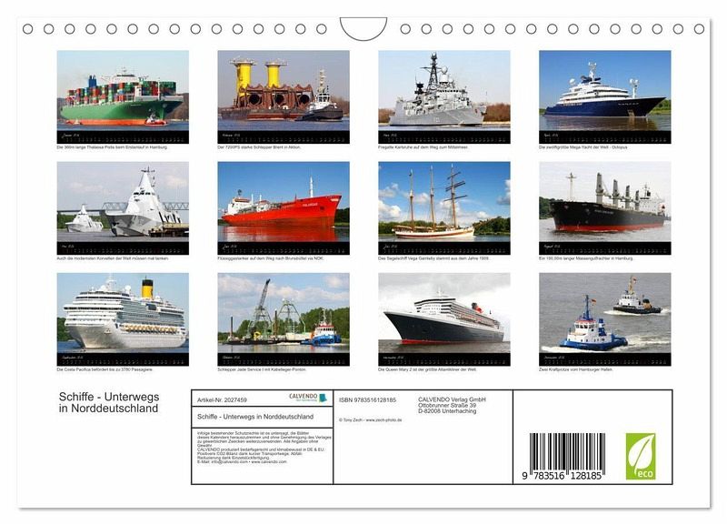 QUALITÄT - Hochwertiger Fotokalender mit 12 wunderschönen Motiven auf lichtbeständigem Bilderdruckpapier, robuste Spiralbindung mit Aufhängebügel.NACHHALTIG - deutliche Abfallreduzierung durch bedarfsgerechte Einzelstückfertigung, umweltfreundliches FSC-zertifiziertes Papier, Produktion in Deutschland, klimabewusste Logistik.PERFEKTES GESCHENK - Kalender für Freunde und Familie, für Kinder und Erwachsene, jung und alt, zu Weihnachten, Geburtstag oder zwischendurch.VIELFALT - Bildkalender in verschiedenen Formaten, z.B. DIN A5, DIN A4, DIN A3 sowie DIN A2. Ob Naturmotiv, Gemälde oder Fotos, ideal für ein persönliches Wohlfühlambiente.Schiffskalender mit Schiffen aller Art von Autor(in): Tony Zech
