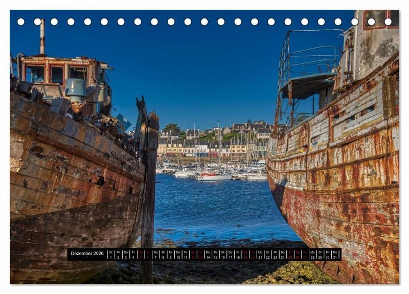 Kommen Sie mit auf eine Bilderreise zu den Liegeplätze ausgedienter Schiffskutter und Boote. In zwölf Kalenderblättern besuchen sie vier Schiffsfriedhöfe im Norden der Bretagne.