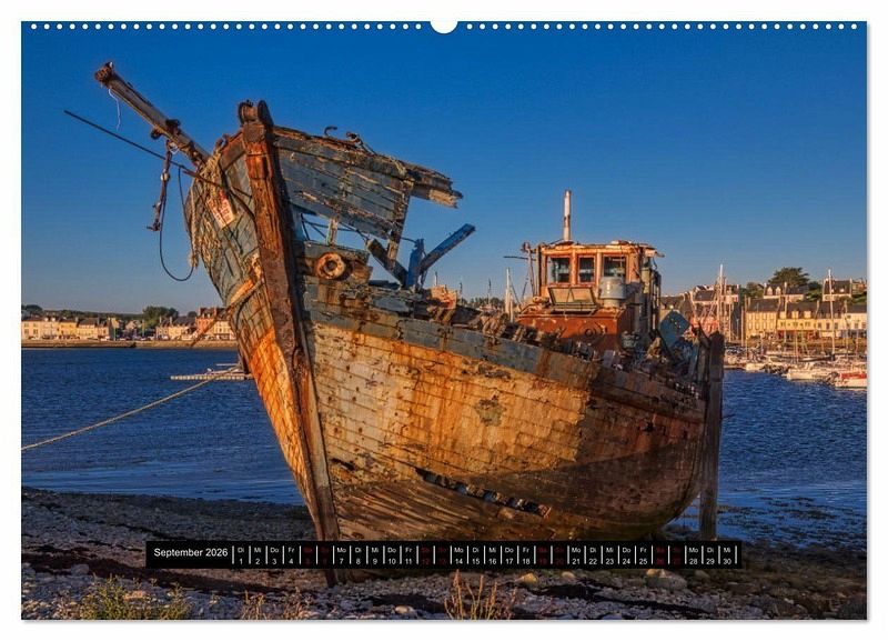 Kommen Sie mit auf eine Bilderreise zu den Liegeplätze ausgedienter Schiffskutter und Boote. In zwölf Kalenderblättern besuchen sie vier Schiffsfriedhöfe im Norden der Bretagne.