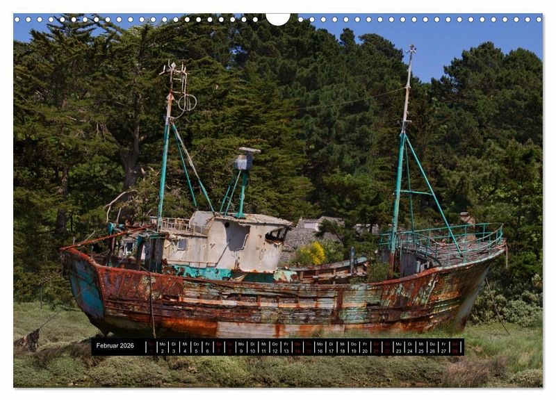 Kommen Sie mit auf eine Bilderreise zu den Liegeplätze ausgedienter Schiffskutter und Boote. In zwölf Kalenderblättern besuchen sie vier Schiffsfriedhöfe im Norden der Bretagne.