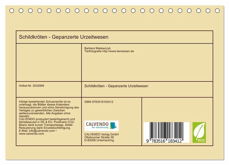 QUALITÄT - Hochwertiger Fotokalender mit 12 wunderschönen Motiven auf lichtbeständigem Bilderdruckpapier, robuste Spiralbindung.NACHHALTIG - deutliche Abfallreduzierung durch bedarfsgerechte Einzelstückfertigung, umweltfreundliches FSC-zertifiziertes Papier, Produktion in Deutschland, klimabewusste Logistik.PERFEKTES GESCHENK - Kalender für Freunde und Familie, für Kinder und Erwachsene, jung und alt, zu Weihnachten, Geburtstag oder zwischendurch.VIELFALT - Bildkalender in verschiedenen Formaten, z.B. DIN A5, DIN A4, DIN A3 sowie DIN A2. Ob Naturmotiv, Gemälde oder Fotos, ideal für ein persönliches Wohlfühlambiente.Schöne Fotos von Schildkröten zu Land und zu Wasser von Autor(in): Barbara Mielewczyk