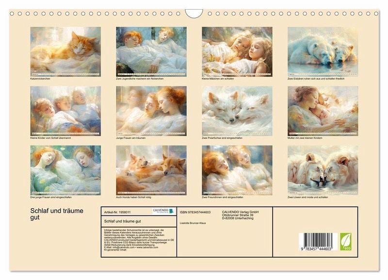 ckfertigung, umweltfreundliches FSC-zertifiziertes Papier, Produktion in Deutschland, klimabewusste Logistik.PERFEKTES GESCHENK - Kalender für Freunde und Familie, für Kinder und Erwachsene, jung und alt, zu Weihnachten, Geburtstag oder zwischendurch.VIELFALT - Bildkalender in verschiedenen Formaten, z.B. DIN A5, DIN A4, DIN A3 sowie DIN A2. Ob Naturmotiv, Gemälde oder Fotos, ideal für ein persönliches Wohlfühlambiente.Zarte Bilder von Träumenden von Autor(in): Liselotte Brunner-Klaus