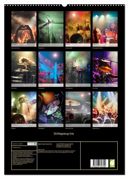 QUALITÄT - Hochwertiger Fotokalender mit 12 wunderschönen Motiven auf lichtbeständigem Bilderdruckpapier, robuste Spiralbindung mit Aufhängebügel.NACHHALTIG - deutliche Abfallreduzierung durch bedarfsgerechte Einzelstückfertigung, umweltfreundliches FSC-zertifiziertes Papier, Produktion in Deutschland, klimabewusste Logistik.PERFEKTES GESCHENK - Kalender für Freunde und Familie, für Kinder und Erwachsene, jung und alt, zu Weihnachten, Geburtstag oder zwischendurch.VIELFALT - Bildkalender in verschiedenenFormaten, z.B. DIN A5, DIN A4, DIN A3 sowie DIN A2. Ob Naturmotiv, Gemälde oder Fotos, ideal für ein persönliches Wohlfühlambiente.Schlagzeug, das Instrument, dass nicht nur den Musiker, sondern während eines Konzertes auch den Leistungssportler verlangt. von Autor(in): Peter Roder