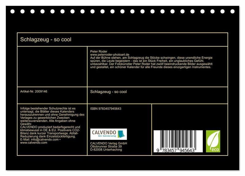 QUALITÄT - Hochwertiger Fotokalender mit 12 wunderschönen Motiven auf lichtbeständigem Bilderdruckpapier, robuste Spiralbindung.NACHHALTIG - deutliche Abfallreduzierung durch bedarfsgerechte Einzelstückfertigung, umweltfreundliches FSC-zertifiziertes Papier, Produktion in Deutschland, klimabewusste Logistik.PERFEKTES GESCHENK - Kalender für Freunde und Familie, für Kinder und Erwachsene, jung und alt, zu Weihnachten, Geburtstag oder zwischendurch.VIELFALT - Bildkalender in verschiedenen Formaten, z.B. DIN A5, DIN A4, DIN A3 sowie DIN A2. Ob Naturmotiv, Gemälde oder Fotos, ideal für ein persönliches Wohlfühlambiente.Schlagzeug, das Instrument, dass nicht nur den Musiker, sondern während eines Konzertes auch den Leistungssportler verlangt. von Autor(in): Peter Roder