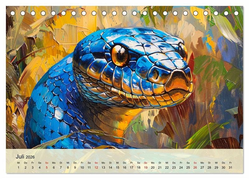 QUALITÄT - Hochwertiger Fotokalender mit 12 wunderschönen Motiven auf lichtbeständigem Bilderdruckpapier, robuste Spiralbindung.NACHHALTIG - deutliche Abfallreduzierung durch bedarfsgerechte Einzelstückfertigung, umweltfreundliches FSC-zertifiziertes Papier, Produktion in Deutschland, klimabewusste Logistik.PERFEKTES GESCHENK - Kalender für Freunde und Familie, für Kinder und Erwachsene, jung und alt, zu Weihnachten, Geburtstag oder zwischendurch.VIELFALT - Bildkalender in verschiedenen Formaten, z.B. DIN A5, DIN A4, DIN A3 sowie DIN A2. Ob Naturmotiv, Gemälde oder Fotos, ideal für ein persönliches Wohlfühlambiente.Die mystische Schönheit der Schlangen im Ölgemälde-Stil von Autor(in): Rose Hurley