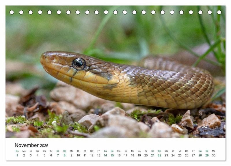 In diesem Kalender werden zwölf verschiedene Schlangenarten aus Europa vorgestellt. Beeindruckende Nahaufnahmen veranschaulichen die Schönheit dieser faszinierenden Reptilien im Detail.