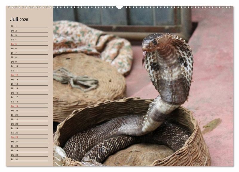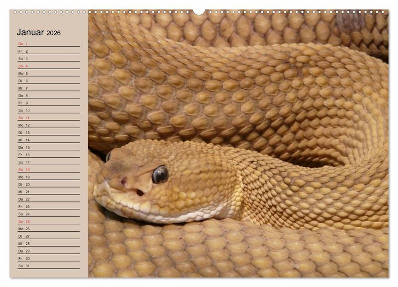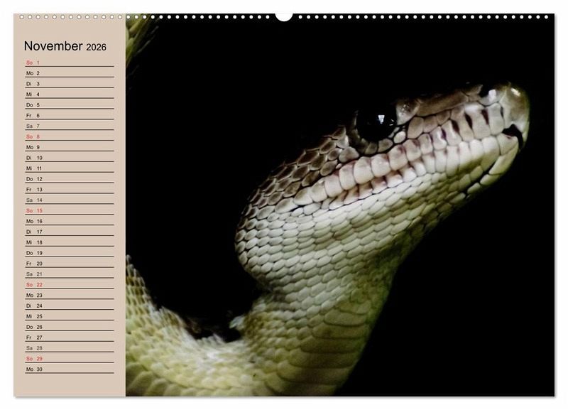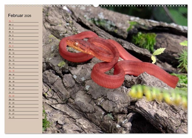 Schlangen sind unglaublich schön gefärbt, aber teilweise auch unglaublich giftig und wie die Riesenschlangen auch sehr stark. Und gerade deshalb faszinieren sie uns wahrscheinlich auch so sehr. Sie leben nicht nur in freier Natur, sondern in tausenden von Wohnzimmern in Terrarien. Ein schöner Planer für Reptilienfreunde.