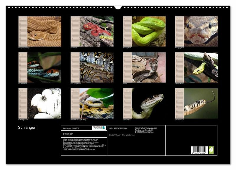 QUALITÄT - Hochwertiger Fotokalender mit 12 wunderschönen Motiven auf lichtbeständigem Bilderdruckpapier, robuste Spiralbindung mit Aufhängebügel.NACHHALTIG - deutliche Abfallreduzierung durch bedarfsgerechte Einzelstückfertigung, umweltfreundliches FSC-zertifiziertes Papier, Produktion in Deutschland, klimabewusste Logistik.PERFEKTES GESCHENK - Kalender für Freunde und Familie, für Kinder und Erwachsene, jung und alt, zu Weihnachten, Geburtstag oder zwischendurch.VIELFALT - Bildkalender in verschiedenen Formaten, z.B. DIN A5, DIN A4, DIN A3 sowie DIN A2. Ob Naturmotiv, Gemälde oder Fotos, ideal für ein persönliches Wohlfühlambiente.Giftige und ungiftige Schlangen in beeindruckenden Farben von Autor(in): Elisabeth Stanzer