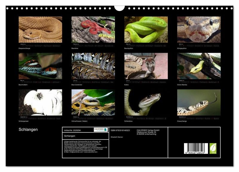 QUALITÄT - Hochwertiger Fotokalender mit 12 wunderschönen Motiven auf lichtbeständigem Bilderdruckpapier, robuste Spiralbindung mit Aufhängebügel.NACHHALTIG - deutliche Abfallreduzierung durch bedarfsgerechte Einzelstückfertigung, umweltfreundliches FSC-zertifiziertes Papier, Produktion in Deutschland, klimabewusste Logistik.PERFEKTES GESCHENK - Kalender für Freunde und Familie, für Kinder und Erwachsene, jung und alt, zu Weihnachten, Geburtstag oder zwischendurch.VIELFALT - Bildkalender in verschiedenen Formaten, z.B. DIN A5, DIN A4, DIN A3 sowie DIN A2. Ob Naturmotiv, Gemälde oder Fotos, ideal für ein persönliches Wohlfühlambiente.Giftige und ungiftige Schlangen in beeindruckenden Farben von Autor(in): Elisabeth Stanzer