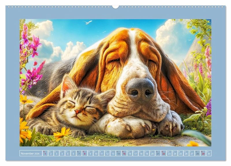 Dieser liebevoll gestaltete Kalender zeigt zwölf farbenfrohe Illustrationen von Basset Hounds in zauberhaften Szenen. Alle Bilder wurden mit Hilfe von KI erstellt und feiern die einzigartige Ausstrahlung dieser besonderen Hunderasse. Die Szenen zeigen Bassets beim Spielen, Träumen, Entdecken und Genießen - immer mit einem Augenzwinkern. Ein ideales Geschenk für alle Hundefans und Basset-Liebhaber.