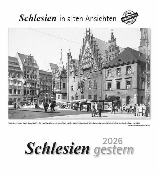 Der „gestern“-Wandkalender 2026 präsentiert wieder historische Schlesien-Ansichten – meist aus der ersten Hälfte des 20. Jahrhunderts. Gleich auf dem Titel grüßt das Alte Rathaus (um 1930), das Wahrzeichen der ehemaligen Landeshauptstadt Breslau.