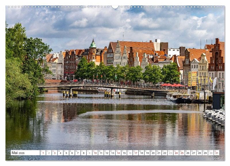 Jeder Monat präsentiert eindrucksvolle Aufnahmen von Lübecks beeindruckenden Wahrzeichen wie dem Holstentor, der Marienkirche und der historischen Altstadt.