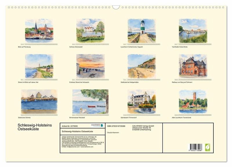 QUALITÄT - Hochwertiger Fotokalender mit 12 wunderschönen Motiven auf lichtbeständigem Bilderdruckpapier, robuste Spiralbindung mit Aufhängebügel.NACHHALTIG - deutliche Abfallreduzierung durch bedarfsgerechte Einzelstückfertigung, umweltfreundliches FSC-zertifiziertes Papier, Produktion in Deutschland, klimabewusste Logistik.PERFEKTES GESCHENK - Kalender für Freunde und Familie, für Kinder und Erwachsene, jung und alt, zu Weihnachten, Geburtstag oder zwischendurch.VIELFALT - Bildkalender in verschiedenen Formaten, z.B. DIN A5, DIN A4, DIN A3 sowie DIN A2. Ob Naturmotiv, Gemälde oder Fotos, ideal für ein persönliches Wohlfühlambiente.Von Flensburg bis Travemünde - zauberhafte Bilder im Aquarell-Stil von Autor(in): Claudia Kleemann