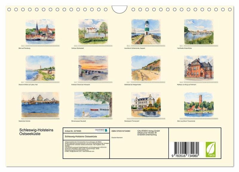 QUALITÄT - Hochwertiger Fotokalender mit 12 wunderschönen Motiven auf lichtbeständigem Bilderdruckpapier, robuste Spiralbindung mit Aufhängebügel.NACHHALTIG - deutliche Abfallreduzierung durch bedarfsgerechte Einzelstückfertigung, umweltfreundliches FSC-zertifiziertes Papier, Produktion in Deutschland, klimabewusste Logistik.PERFEKTES GESCHENK - Kalender für Freunde und Familie, für Kinder und Erwachsene, jung und alt, zu Weihnachten, Geburtstag oder zwischendurch.VIELFALT - Bildkalender in verschiedenen Formaten, z.B. DIN A5, DIN A4, DIN A3 sowie DIN A2. Ob Naturmotiv, Gemälde oder Fotos, ideal für ein persönliches Wohlfühlambiente.Von Flensburg bis Travemünde - zauberhafte Bilder im Aquarell-Stil von Autor(in): Claudia Kleemann
