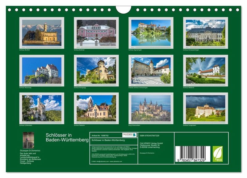 QUALITÄT - Hochwertiger Fotokalender mit 12 wunderschönen Motiven auf lichtbeständigem Bilderdruckpapier, robuste Spiralbindung mit Aufhängebügel.NACHHALTIG - deutliche Abfallreduzierung durch bedarfsgerechte Einzelstückfertigung, umweltfreundliches FSC-zertifiziertes Papier, Produktion in Deutschland, klimabewusste Logistik.PERFEKTES GESCHENK - Kalender für Freunde und Familie, für Kinder und Erwachsene, jung und alt, zu Weihnachten, Geburtstag oder zwischendurch.VIELFALT - Bildkalender in verschiedenen Formaten, z.B. DIN A5, DIN A4, DIN A3 sowie DIN A2. Ob Naturmotiv, Gemälde oder Fotos, ideal für ein persönliches Wohlfühlambiente.Dreizehn eindrucksvolle Schlösser in Baden-Württemberg von Autor(in): Giuseppe Di Domenico