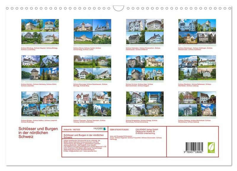 QUALITÄT - Hochwertiger Fotokalender mit 12 wunderschönen Motiven auf lichtbeständigem Bilderdruckpapier, robuste Spiralbindung mit Aufhängebügel.NACHHALTIG - deutliche Abfallreduzierung durch bedarfsgerechte Einzelstückfertigung, umweltfreundliches FSC-zertifiziertes Papier, Produktion in Deutschland, klimabewusste Logistik.PERFEKTES GESCHENK - Kalender für Freunde und Familie, für Kinder und Erwachsene, jung und alt, zu Weihnachten, Geburtstag oder zwischendurch.VIELFALT - Bildkalender in verschiedenen Formaten, z.B. DIN A5, DIN A4, DIN A3 sowie DIN A2. Ob Naturmotiv, Gemälde oder Fotos, ideal für ein persönliches Wohlfühlambiente.Zahlreiche traumhafte Schlössern und Burgen im Norden der Schweiz von Autor(in): Giuseppe Di Domenico