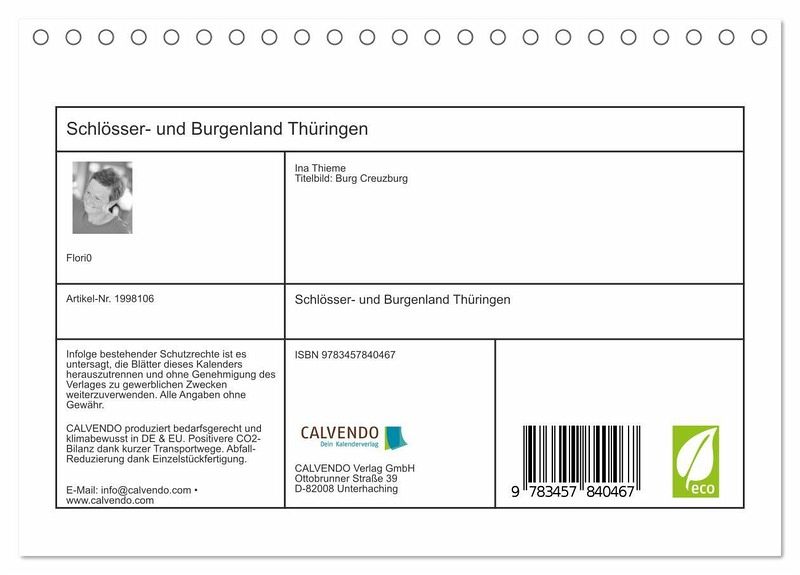 QUALITÄT - Hochwertiger Fotokalender mit 12 wunderschönen Motiven auf lichtbeständigem Bilderdruckpapier, robuste Spiralbindung.NACHHALTIG - deutliche Abfallreduzierung durch bedarfsgerechte Einzelstückfertigung, umweltfreundliches FSC-zertifiziertes Papier, Produktion in Deutschland, klimabewusste Logistik.PERFEKTES GESCHENK - Kalender für Freunde und Familie, für Kinder und Erwachsene, jung und alt, zu Weihnachten, Geburtstag oder zwischendurch.VIELFALT - Bildkalender in verschiedenen Formaten, z.B. DIN A5, DIN A4, DIN A3 sowie DIN A2. Ob Naturmotiv, Gemälde oderFotos, ideal für ein persönliches Wohlfühlambiente.Wenn es in Deutschland ein "Schlösser- und Burgenland" gibt, dann liegt es in Thüringen. von Autor(in): Flori0